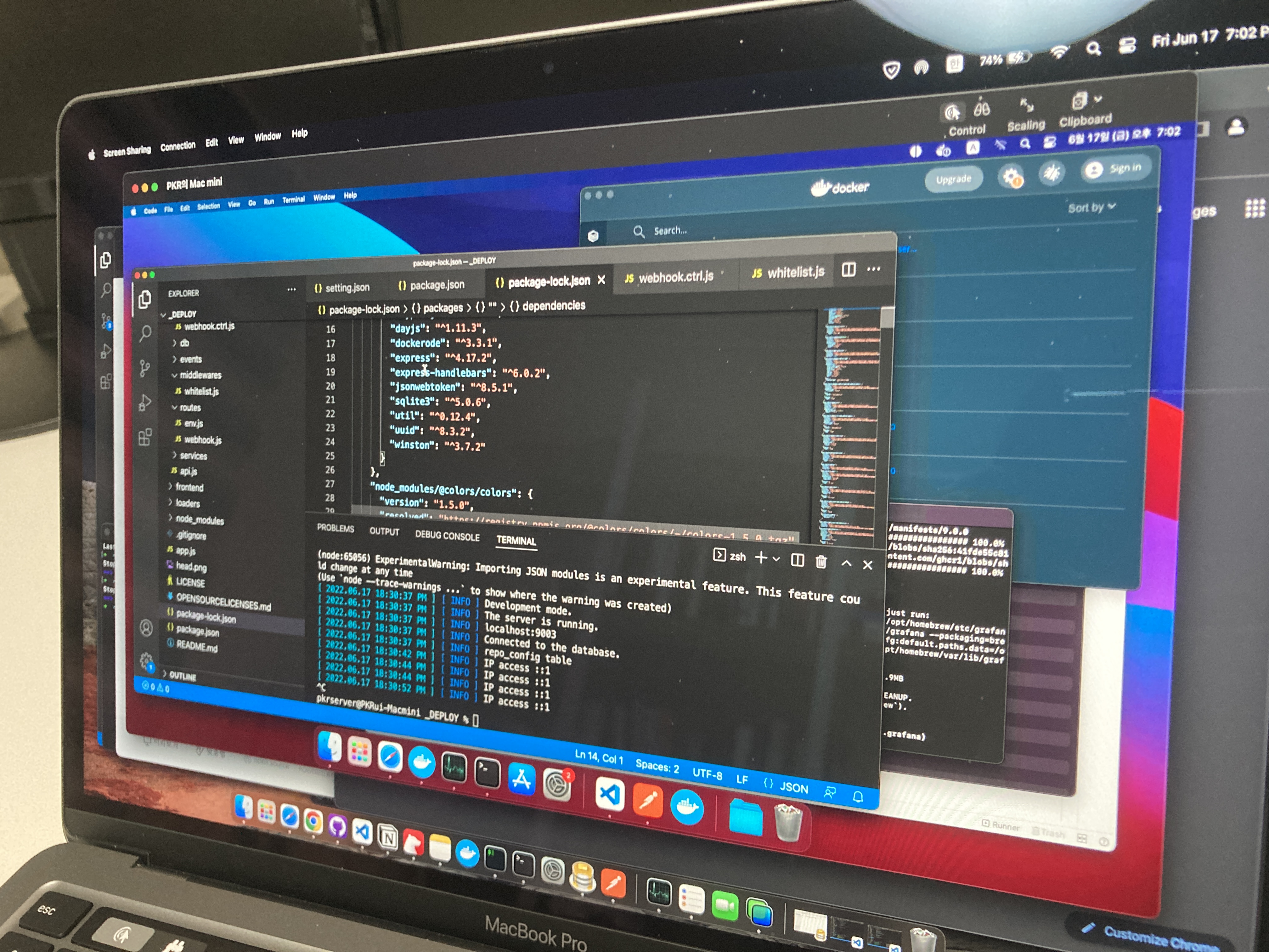 ๊ธฐ๋ณธ์ ์ผ๋ก ๋๋ถ๋ถ์ ์๋น์ค๋ ์์กด์ฑ ๋๋ฌธ์ ๋์ปค ๊ธฐ๋ฐ์ผ๋ก ์ด์๋๋ค. ํ๋ก๋ฉํ ์ฐ์ค์ ๊ฐ์ ํธ์คํธ ๋ ๋ฒจ์์ ๋์ํ๋ ์ํํธ์จ์ด๋ฅผ ์ ์ธํ๊ณ ๋ ๋๋ถ๋ถ ๋์ปค์์ ์คํ๋๋ค. ์ฐ์ ' DeVent Deploy ' ๋ฅผ ์ฌ์ฉํด์ ๊น ํธ์ ์ฆ์ ๋์ปค๋ก ๋ฐฐํฌํ๊ฒ๋ ์ค๊ณ๋์๋ค. ์ฌ๊ธฐ์ ํ ์คํธ๋ก ๋ธ๋ก๊ทธ์ ๋์์ธ ์์คํ ์ ๋ฐฐํฌํ๊ณ ์๋ค.