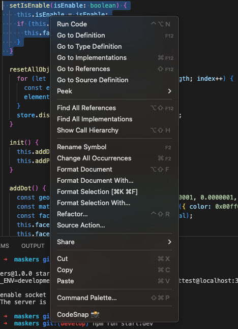 1. ์ค์น ํ, ๋๋๊ทธํ ํ ์ฐํด๋ฆญํ๋ฉด ๋งจ ์๋์ Codesnap์ด ์๋ก ์๊น๋๋ค. ํด๋ฆญํ๋ฉด