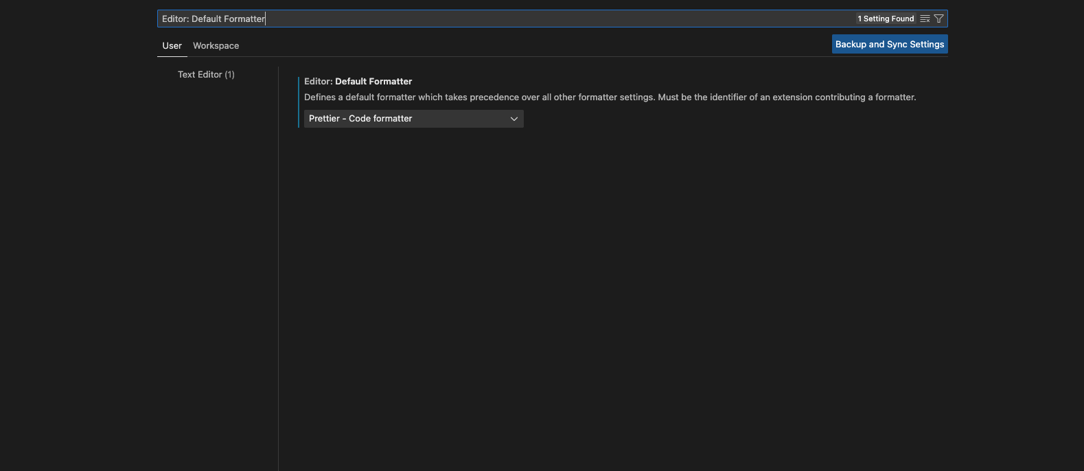 2. ๋จผ์ ctrl + , ๋ฅผ ํด๋ฆญํด ์ค์ ์ ์ด์ด์ค๋๋ค. ๊ทธ๋ผ ์๋ ์ด๋ฏธ์ง์ฒ๋ผ ๋จ๊ฒ ๋ฉ๋๋ค. ๊ฒ์์ฐฝ์ Editor: Default Formatter๋ฅผ ๊ฒ์ํ๊ณ ๊ธฐ๋ณธ ํฌ๋งทํฐ๋ฅผ ์ค์นํ ์ต์คํ ์ ์ผ๋ก ๋ณ๊ฒฝํด ์ค๋๋ค.