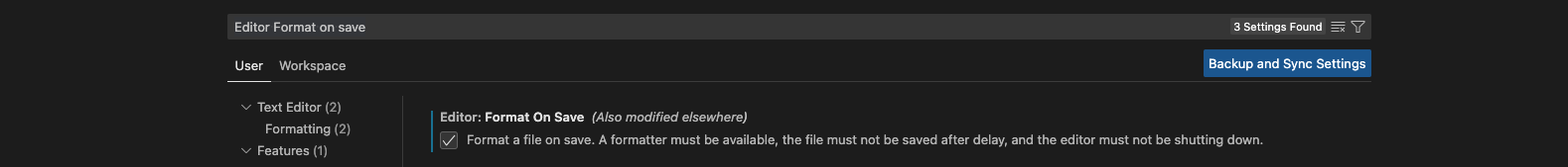 3. ์ค์ ์์ Editor Format on save๋ฅผ ๊ฒ์ํด ์ฃผ๊ณ ์๋์ ๊ฐ์ด ์ฒดํฌ๋ฐ์ค๋ฅผ ํด๋ฆญํด ์ค๋๋ค.