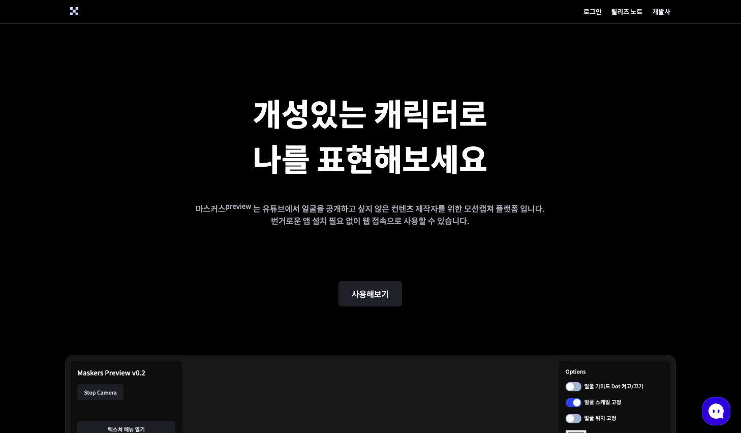 ๋ง์ค์ปค์ค๋ ๋ฐ๋ฒคํธ์์ ๊ฐ๋ฐํ 3D ์ผ๊ตด์บก์ฒ ์ํํธ์จ์ด์ ๋๋ค. ์น ๋ธ๋ผ์ฐ์ ๋ก ์ค์น ์์ด ๊ฐํธํ๊ฒ ์ฌ์ฉํ ์ ์์ต๋๋ค. ํ์ฌ ๋ ๊ฐ์ง ํ์ด์ค ์ต์ ์ ์ ๊ณตํ๋ฉฐ ๋ฒํ๋ฒ ์ต์ ๋ํ ์กด์ฌํฉ๋๋ค. ์ฌ์ฉ์๊ฐ VRMํ์ผ์ ์ ๋ก๋ํด์ ์ปค์คํ ํ ์ ์๊ณ ๊ธฐ๋ณธ ๋ฒํ๋ฒ ๋ชจ๋ธ๋ก๋ ์ถฉ๋ถํ ๊ฐ๋ฅํฉ๋๋ค. ์น์บ ๋ง ์์ผ๋ฉด ์ธ์ ์ด๋์๋ ๋ฒํ๋ฒ๋ฅผ ํ ์ ์์ผ๋ฉฐ ์๋์์ ๋ฐ๋ก ์ฒดํํด ๋ณด์ค ์ ์์ต๋๋ค. + ๊ผญ ์น์บ ์ด ์์ด๋ ์ค๋งํธํฐ ์นด๋ฉ๋ผ๋ก๋ ์ถฉ๋ถํ ๊ฐ๋ฅํฉ๋๋ค.